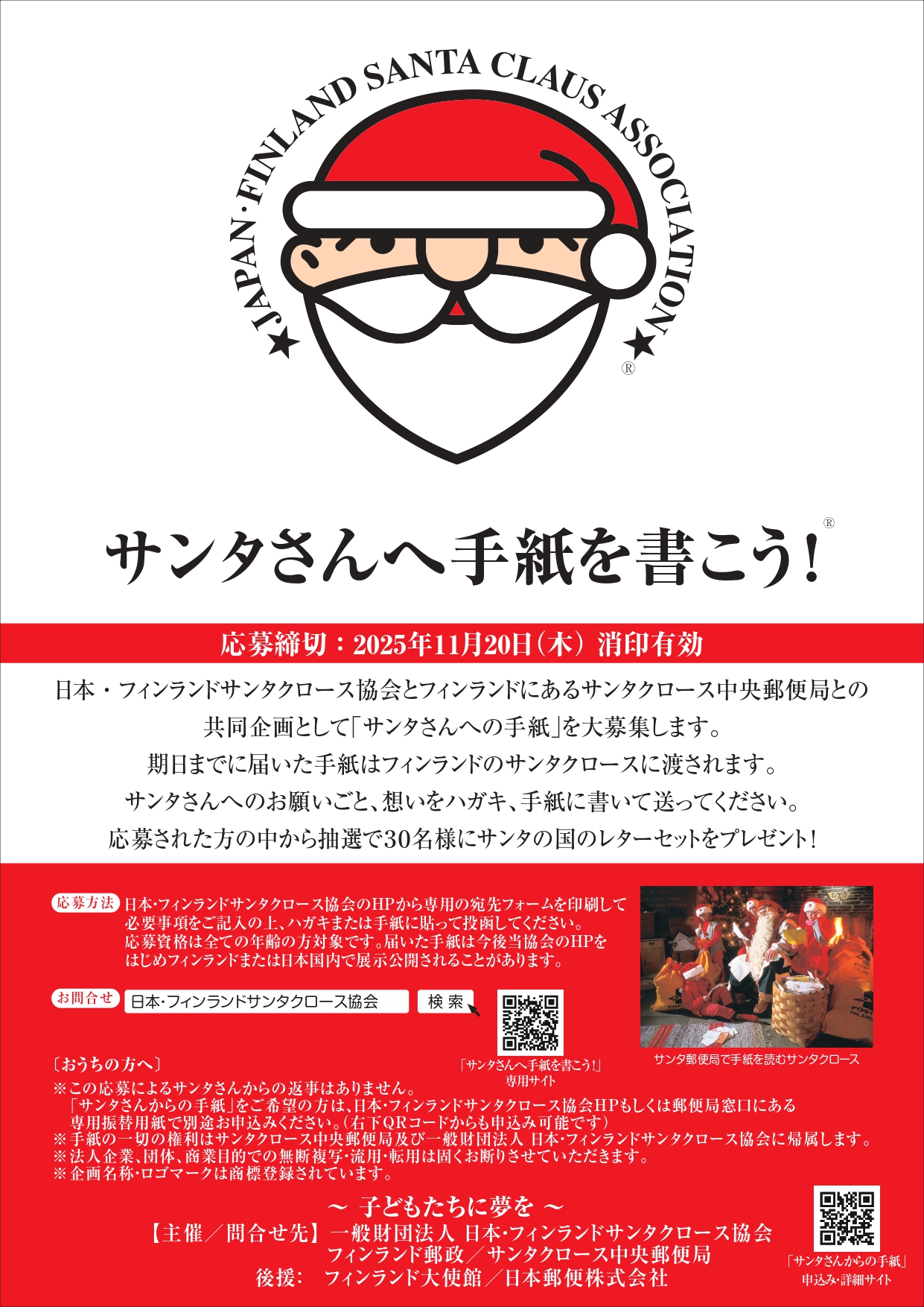 後援:フィンランド大使館/フィンランド郵政/サンタクロース中央郵便局/日本郵便株式会社